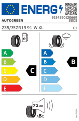 Equipped with good grip on dry and wet roads, the Autogreen Supersportchaser SSC5 235/35 ZR19 91W XL summer tyre offers great performance for sports cars, coupes and saloons. It is composed of 4 longitudinal grooves to disperse water and limit aquaplaning. Its special tread provides increased traction.