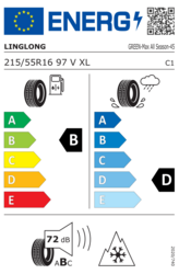 Designed for powerful touring cars, the Linglong GreenMax All Season 215/55 R16 97V XL MFS M+S is a 4-season tyre. It offers very good grip and excellent handling whatever the weather conditions. The chevron design of its tread adheres perfectly to give top performance, even at high speed. The side sipes evacuate water and snow to limit the risk of aquaplaning. Its strong sidewalls and innovative steel structure ensure long life and high mileage.